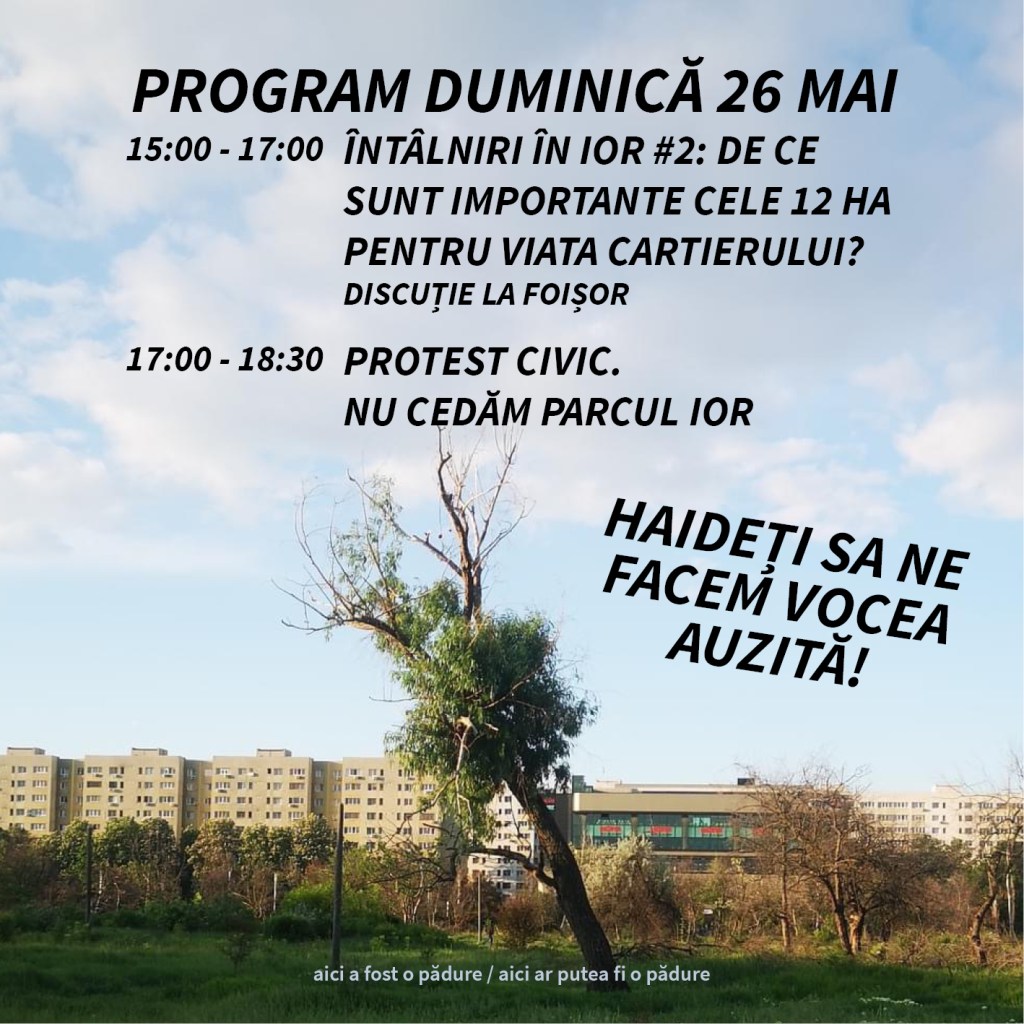 Întâlnirea va fi urmată de protestul săptămânal de apărare a parcului IOR la ora 17.00: https://www.facebook.com/events/395778070096894/395778076763560