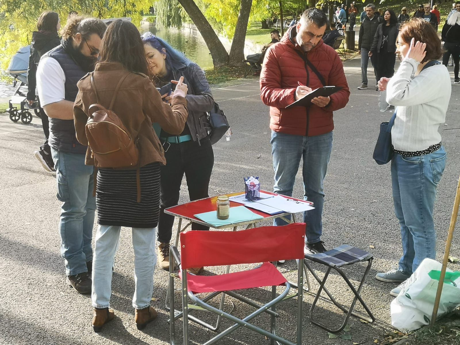 Ne-am bucurat de soare in parcul nostru impreuna cu oameni din comunitate ☀️🌳 Am protestat, am impartasit experiente despre viata langa IOR, am organizat tururi ghidate si spatii de troc, gradinarit, desenat harti, am discutat legislatie de mediu, am vazut documentare. Nu uitam ce s-a intamplat cu parcul si povestim pana afla toata lumea! ✊🏾🪧